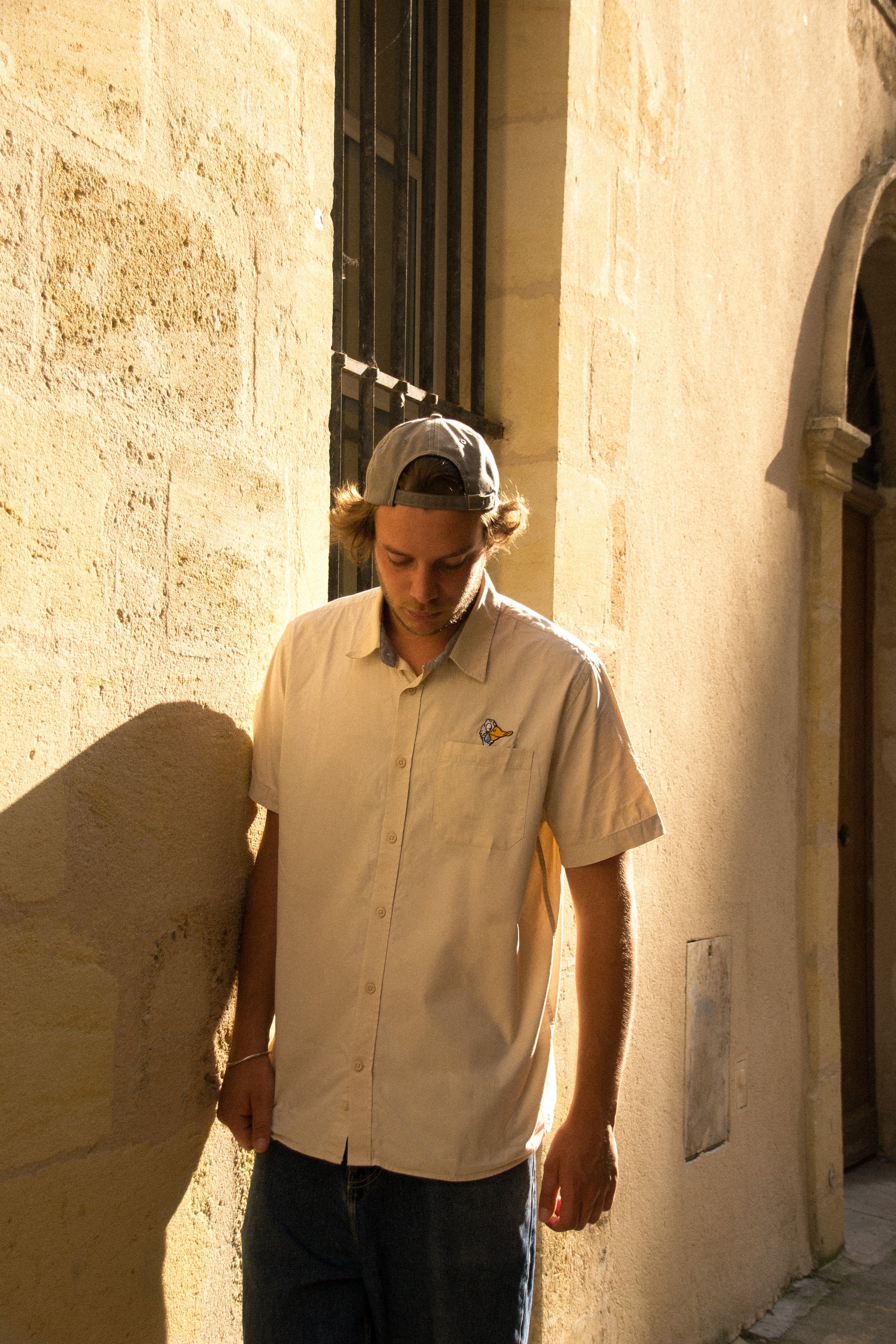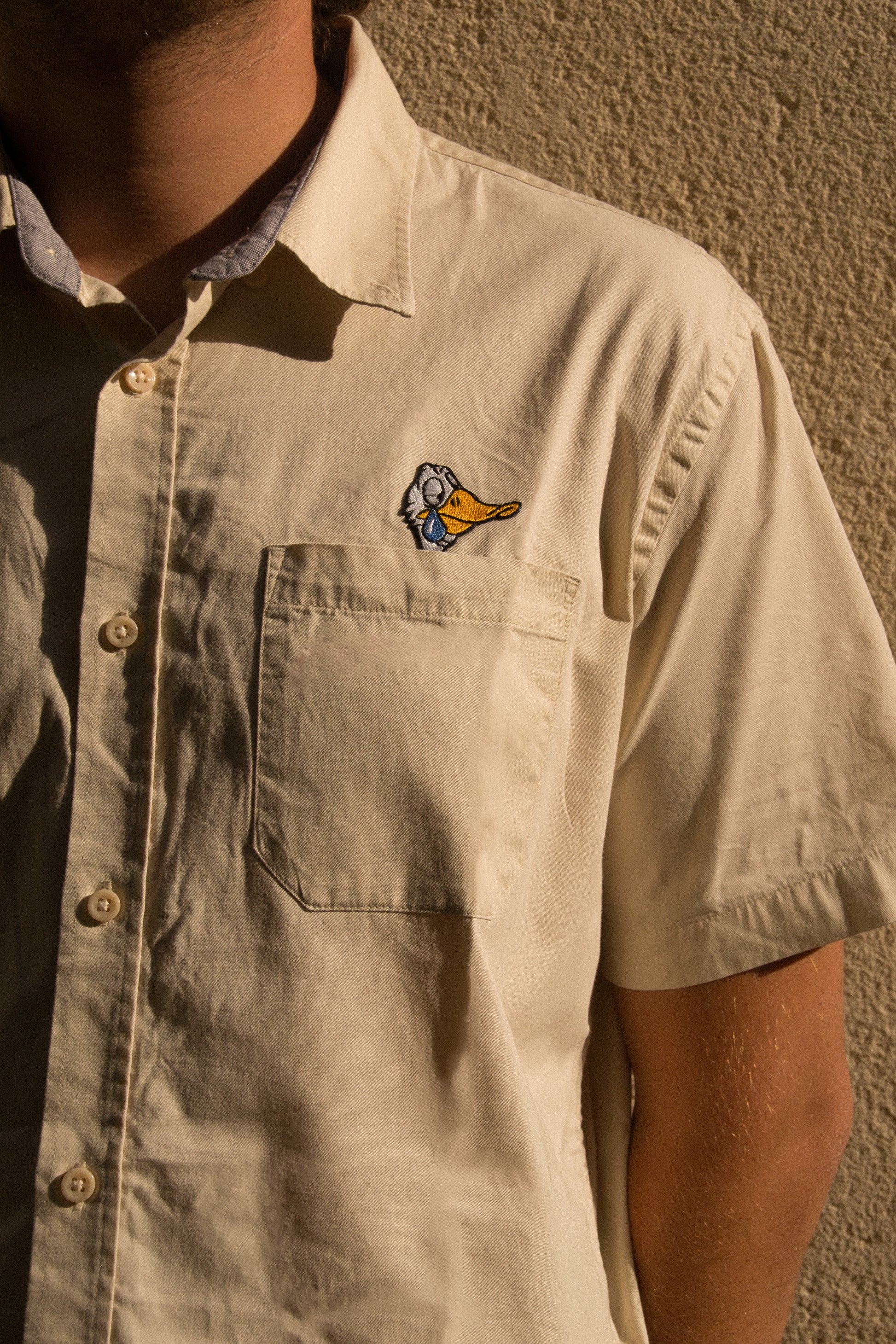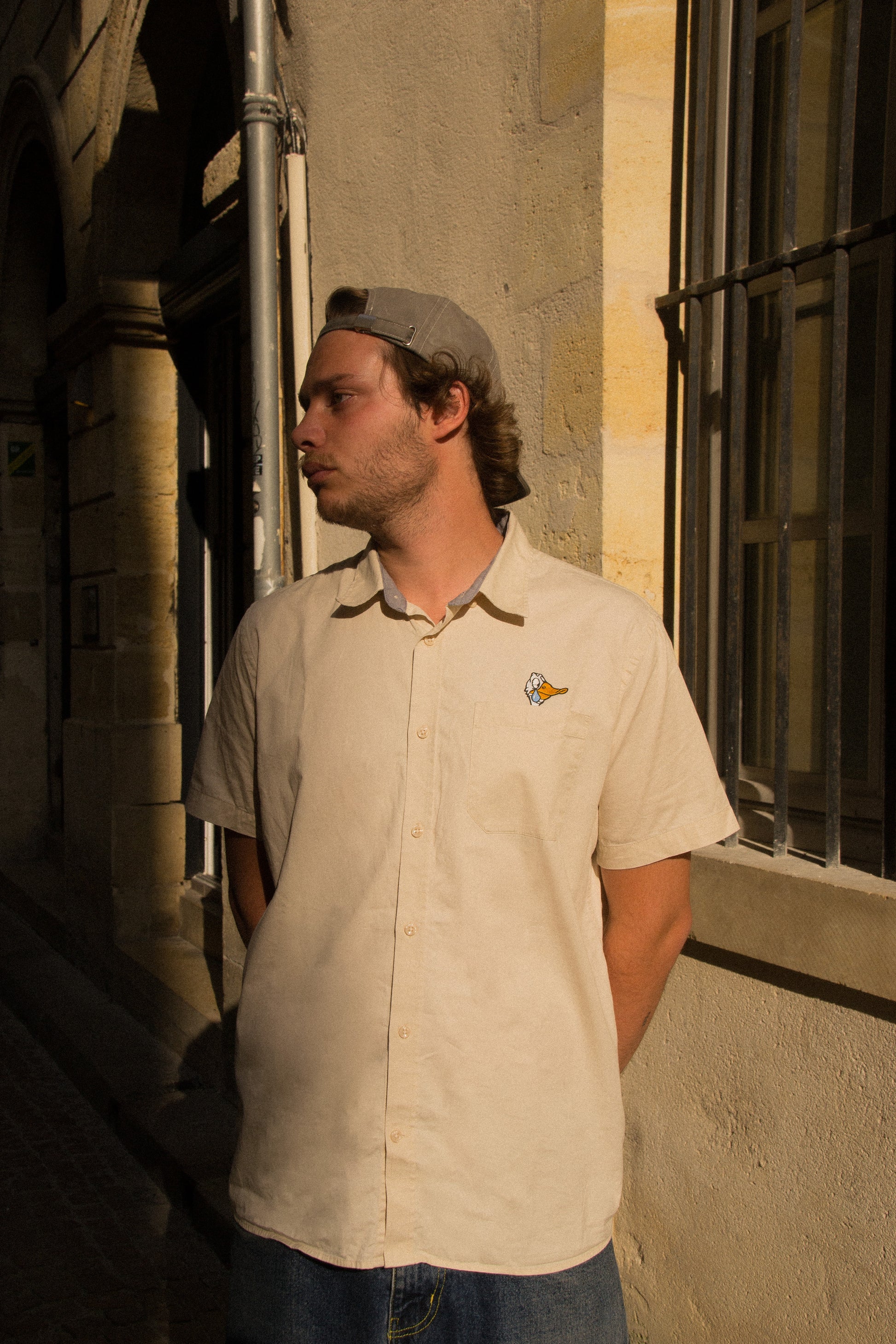 Chemise manches courtes en coton léger, coupe droite. Coloris beige naturel, avec broderie sur la poche poitrine. Confortable et respirante, idéale pour les beaux jours.